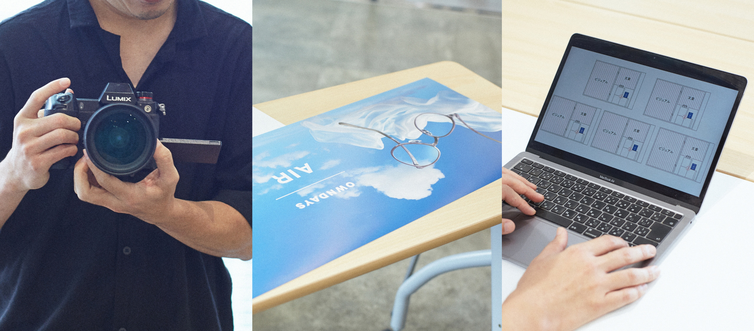 今回は、ブランドの“顔”をつくり出す3つの職種、「映像クリエイター」「グラフィックデザイナー」「VMD担当」のスタッフに、自分らしさ、そしてOWNDAYSらしさについて話を聞きました。クリエイティブを通して、彼らは日々「らしさ」をどのように追求しているのか? 仕事へのこだわりや楽しさ、苦労まで赤裸々に語ってもらいましょう。