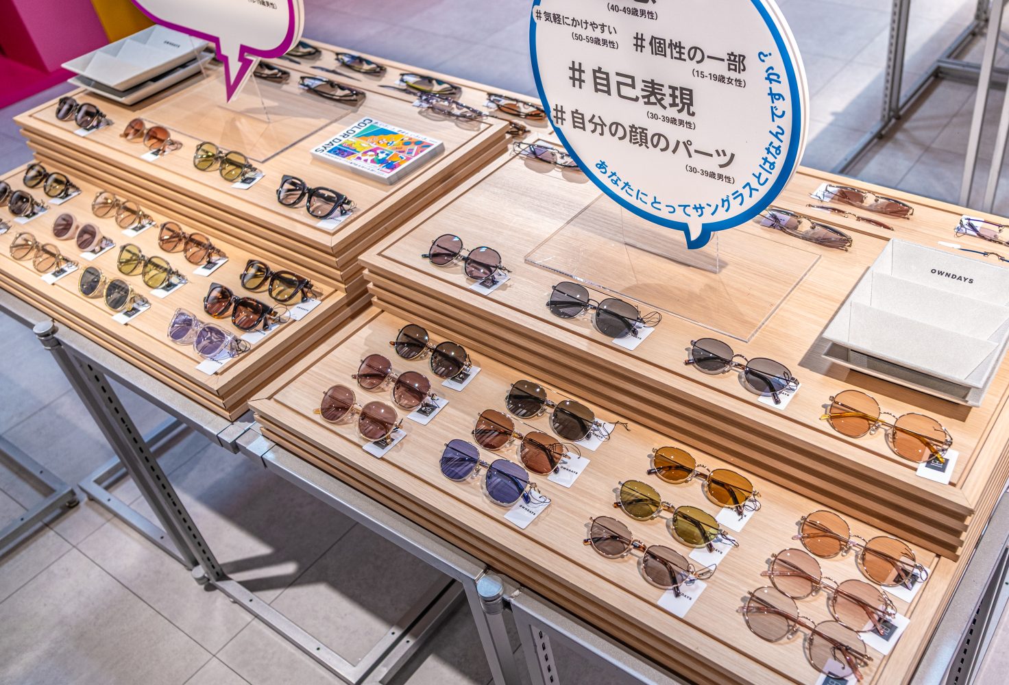 期間限定のサングラスの専門店「COLOR DAYS」は、約200種類以上のサングラスや、カラーレンズなどを展示・販売したポップアップストア。夏のレジャーやおでかけを想起させる、トランク型のカラフルな什器を開発し、体験価値が高まる空間を演出した。