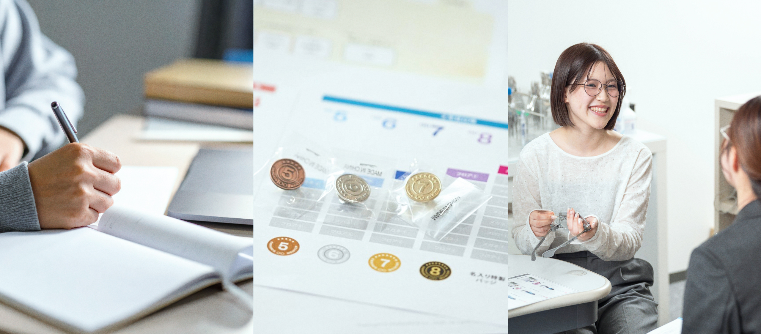N.K.:店舗スタッフの中で、「メガネ技術」に関する検定1級取得者に与えられる『金のやっとこ』を持つスタッフは約100名、特級である眼鏡作製技能士(国家資格)の取得者は、25名(2026年1月時点)。今後は等級に応じたバッジをスタッフに授与し、お客様にも“見える”資格として活用したいと考えています。